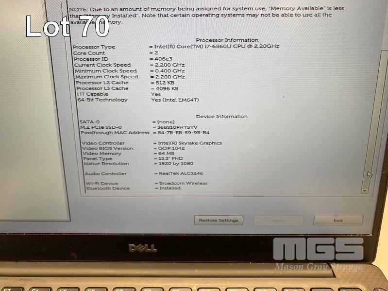 LAPTOP, DELL XPS 13 9350, CORE i7 6560U (6TH GEN) @ 2.2GHz, 8GB DDR3 RAM, 256GB NVMe M.2 SSD, 13.3" WIDESCREEN (1920x1080), Wi-Fi, BLUETOOTH, WINDOWS 10 HOME INSTALLED, POWER SUPPLY & CARRY BAG (NOTE: SCREEN HINGE LOOSE LHS) S/N:CK57DC2
