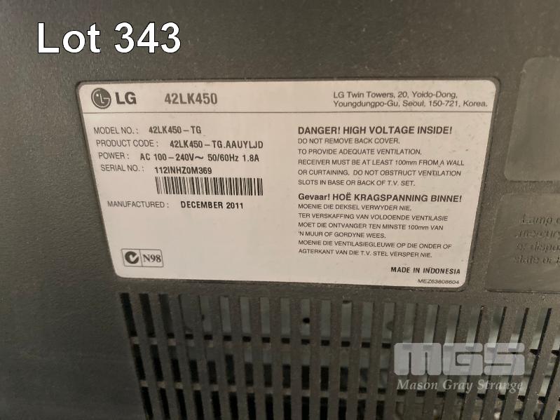 TV, LG 42LK450 42" LCD, WITH REMOTE (NO STAND) S/N:112INHZ0M369