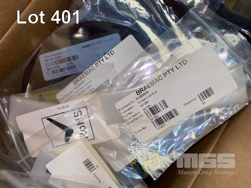 QTY ASST MINI-CIRCUITS FILTERS, MLCC DESIGN KITS, TINY MODULAR SNAP BOXES, MOUSER ELECTRONICS, INDUCTORS, CERAMIC CAPACITORS, FILM RESISTORS ETC
