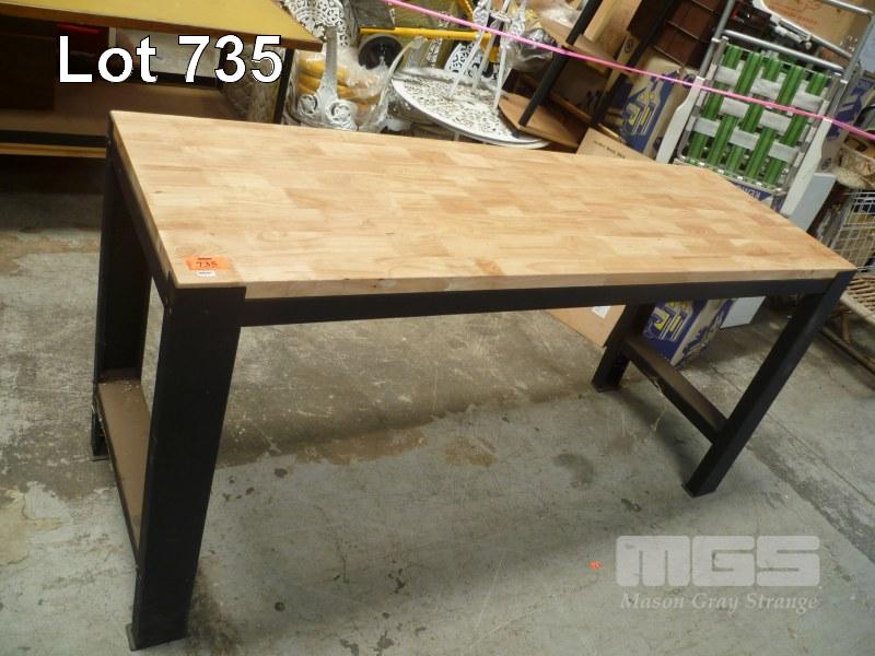 WORKBENCH, METAL FRAME, SOLID TIMBER TOP, 179cm (L)