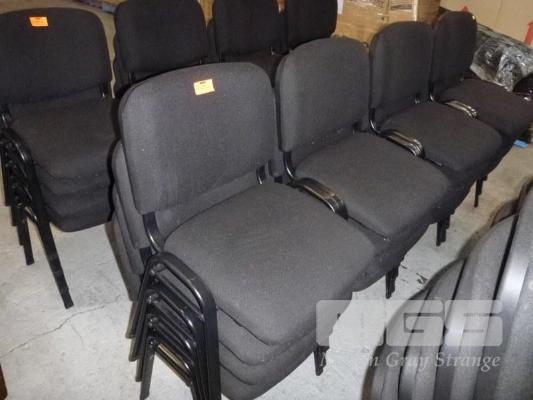 16 x STACKABLE DINING /FUNCTION CHAIRS, BLACK FABRIC, BLACK STEEL FRAME