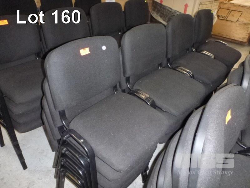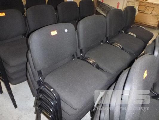 16 x STACKABLE DINING /FUNCTION CHAIRS, BLACK FABRIC, BLACK STEEL FRAME