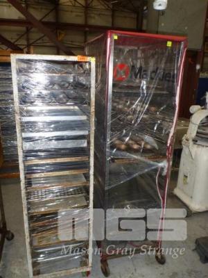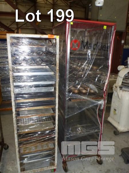 2 x MOBILE BAKERS RACKS & ASSORTED BAKER TINS & MOULDS
