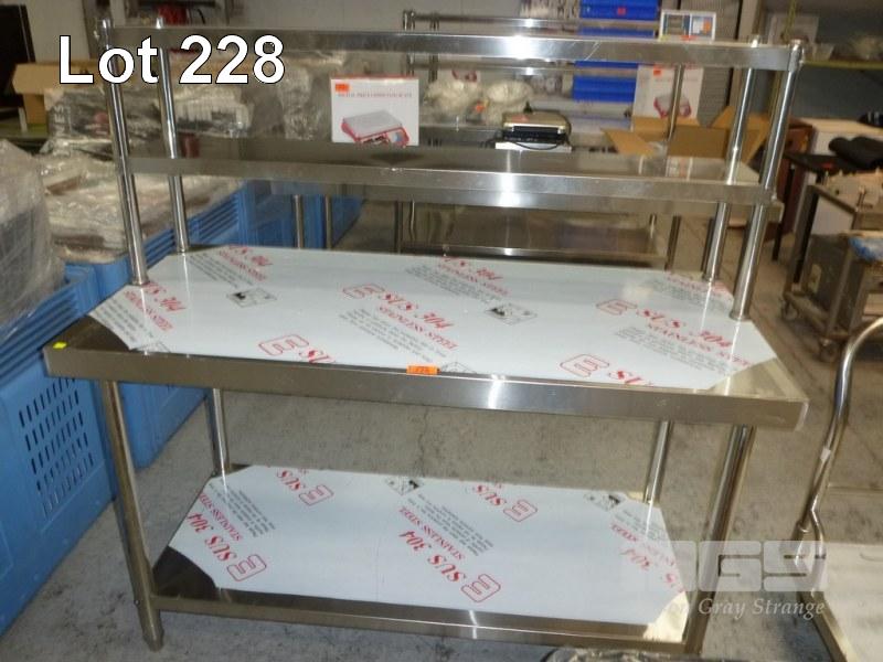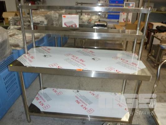 STAINLESS STEEL BENCH, 150 x 70cm, 2 TIER WITH OVERSHELF