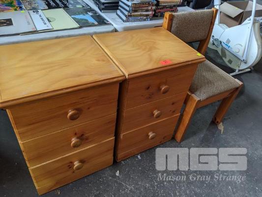 2 x MATCHING 3 DRAWER PINE BEDSIDE UNITS & TIMBER CHAIR