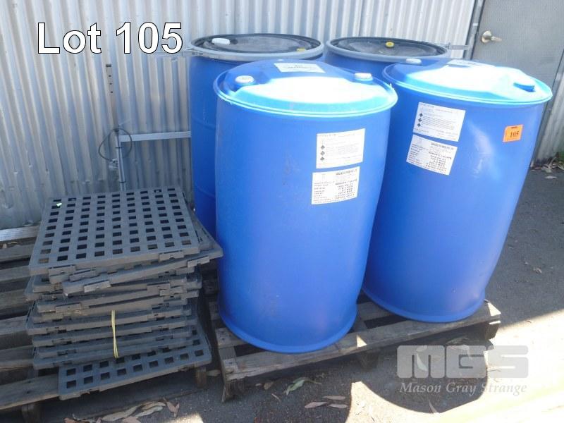 4 x ASSORTED POLY DRUMS, 200 LITRE & 15 x PLASTIC MATS