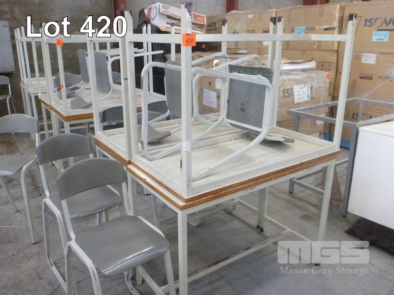 4 x TECH BENCHES, STEEL FRAME, 120 x 60 x 85cm (H) WITH 8 x TECH CHAIRS, 62cm (H)