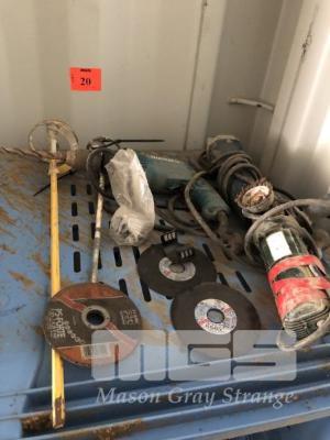 MAKITA HP1631 HAND DRILL, FORWARD/REV & HAMMER, 240V, BOSCH GWF7125 ANGLE GRINDER, 115mm, BOSCH ANGLE GRINDER WITH WIRE BRUSH 240 VOLT & 2 x PAINT STIRRERS