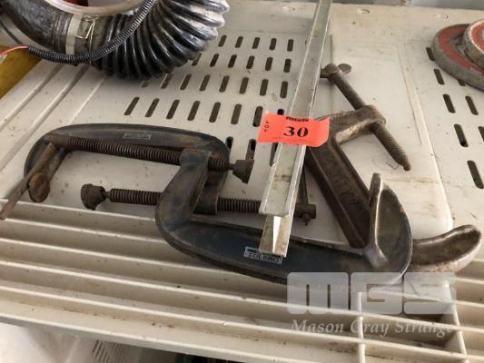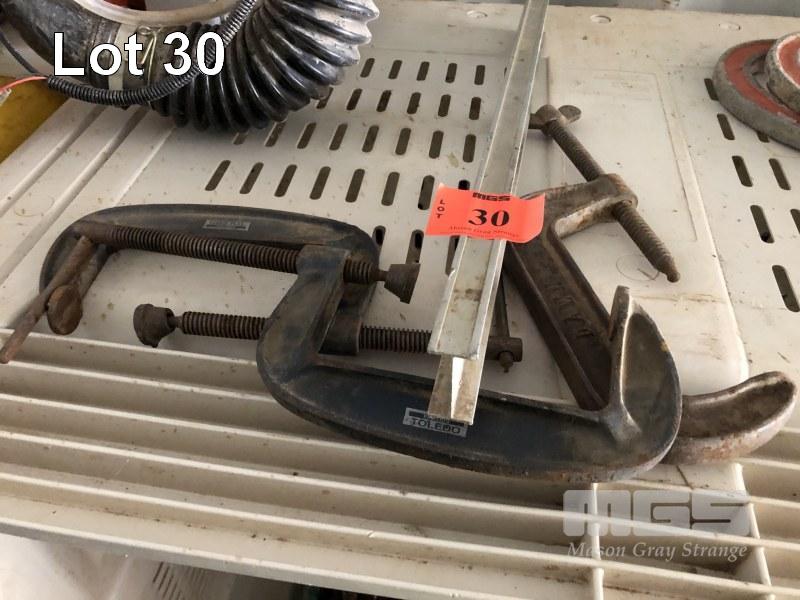 3 x G-CLAMPS, 150mm & ALLOY SPIRIT LEVEL