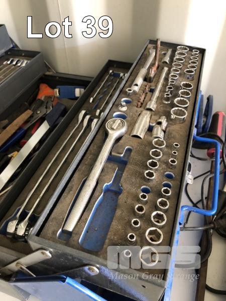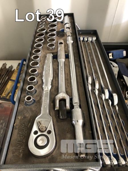 KINCROME TOOL BOX & TOOL SET, 1/3, 3/8 & 1/2" SOCKETS & DRIVE SPANNERS & HAND TOOLS
