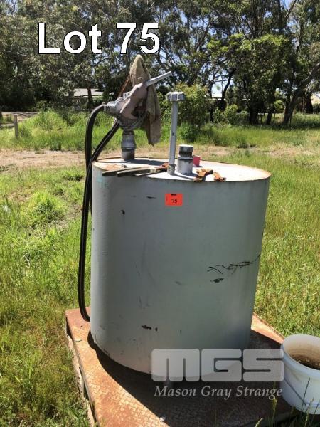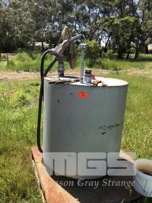 FUEL TANK, DIESEL ON STEEL BASE, 400 LITRE APPROX WITH VENTING & LEVER PUMP