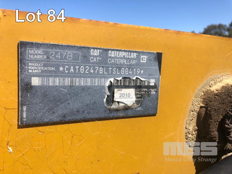 2010 CATERPILLAR 247B-3 TRACKED SKID STEER LOADER PIN: CAT0247BLTSL00419 HOURS: 2,00hours INDICATED 4 IN 1 BUCKET WITH LEVELING PLATE BOX STEEL FRAME 8.8% BUYERS PREMIUM