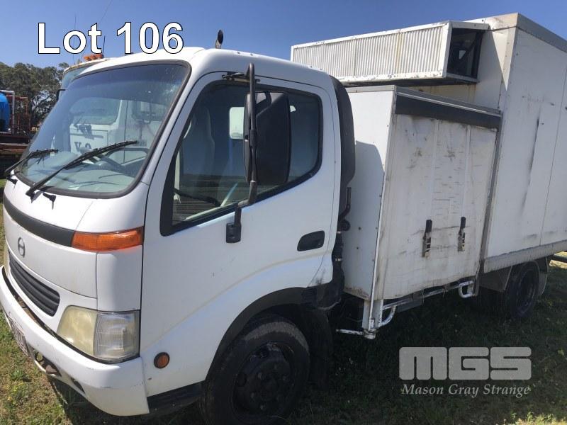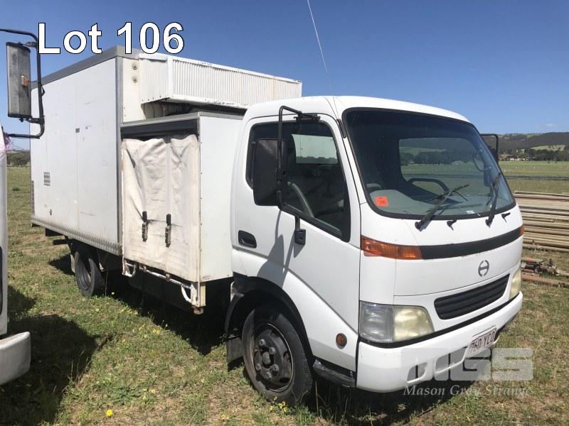 2002 HINO DUTRO REFRIGERATED TAUTLINER REG: 760YCO (QLD) VIN: JHDHZ411000006359 ODO: 396,000 kms APPROX. GVM: 7,000 kg 3.2m LONG REFRIGERATED SECTION & 1.4m LONG STORAGE SECTION . 8.8% BUYERS PREMIUM