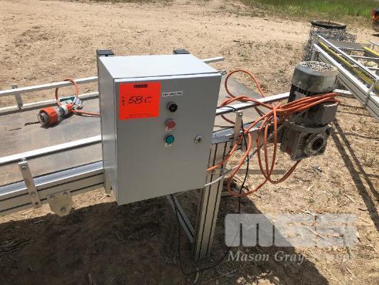 PACKING CONVEYOR SYSTEM, 2200mm (L) x 600mm (BELT) INFEED CONVEYOR BELT 415V WITH ROTARY PACKING TABLE 1800mm (W) OUT FEED GRAVITY CONVEYOR ROLLER, 4500mm (L)