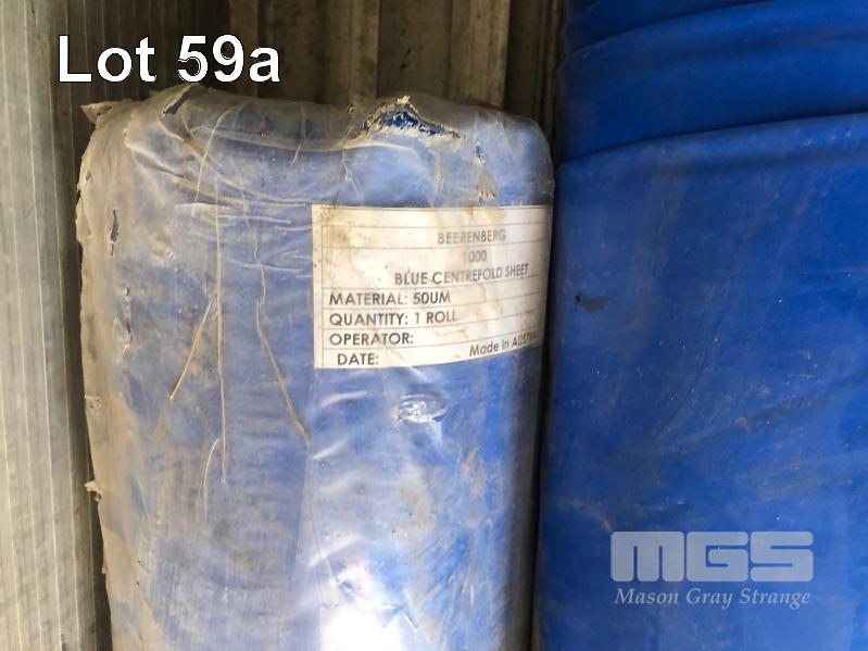 2 x ROLLS BEERENBERG 1000 BLUE CENTER FOLD SHEET MATERIAL, 50UM LARGE QUANTITY ASSORTED TUBS AND BUCKETS