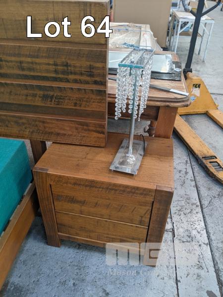 SOLID WOODEN BEDROOM SUITE INC QUEEN BED FRAME & MATTRESS, 2 x BEDSIDE TABLES, 2 x TABLE LAMPS & CHEST OF DRAWERS