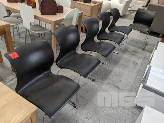 6 x DINING CHAIRS, CHROME STEEL LEGS & BLACK MOULDED PLASTIC SEAT