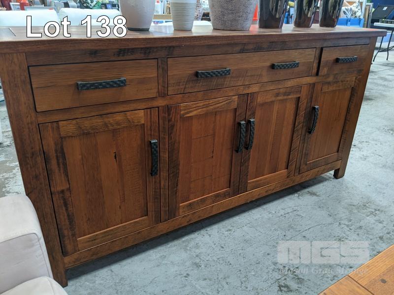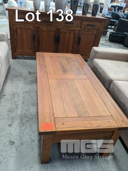 SOLID TIMBER COFFEE TABLE, 140 x 67cm & MATCHING BUFFET, 182 x 45cm, 4 x DRAWER/DOOR