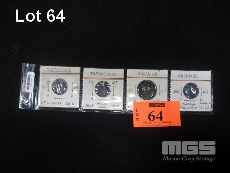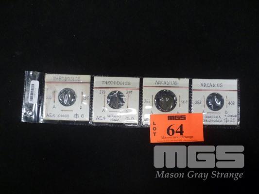 4 X ROMAN COINS, THEODOSIUS & ARCADIUS