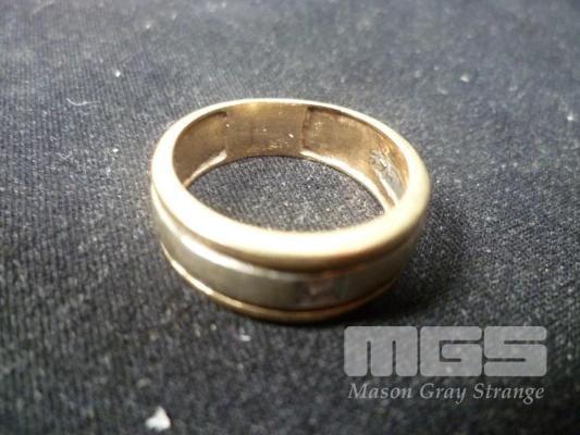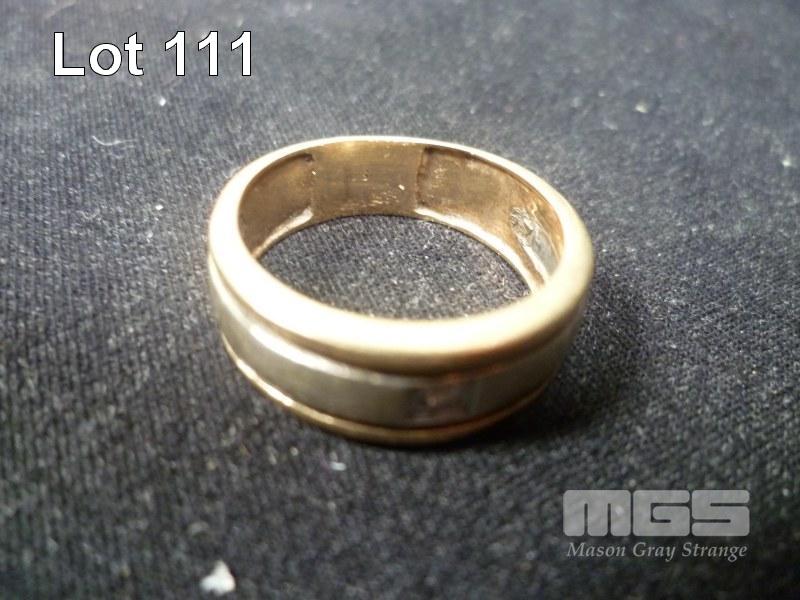 GENTS GOLD DRESS RING MARKED 9C WITH PLATANUM INLAY SET WITH SMALL DIAMOND 6.05 GRAMS