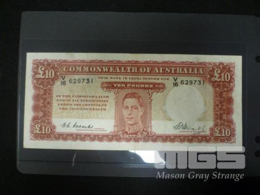 1949 10 POUND NOTE "V16" COOMBS WATT HIGH GRADE