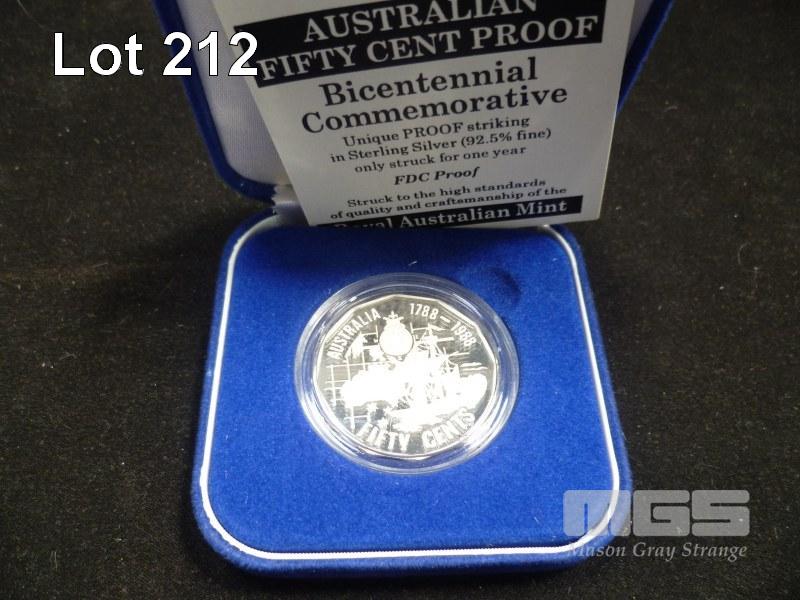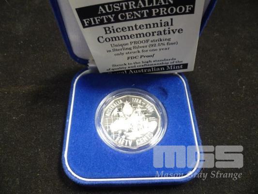ROYAL AUSTRALIAN MINT, AUSTRALIA, SILVER PROOF, 50c BICENTENNIAL COMMEMORATIVE COIN