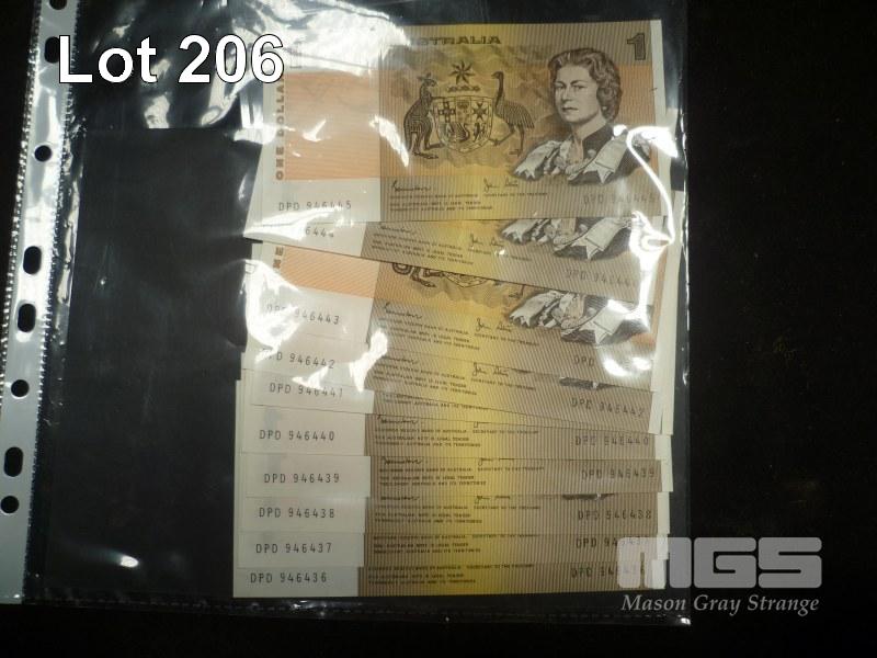 $1 NOTES, JOHNSTON/STONE, 10 CONSECUTIVE NOTES AUNC DPD 946436-445