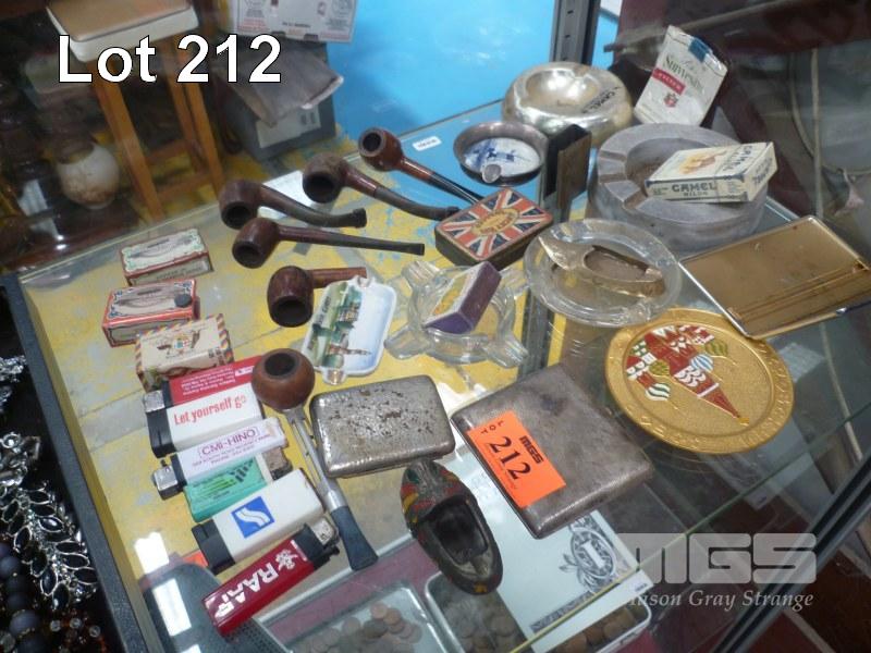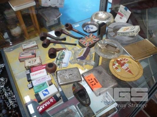 VINTAGE SMOKERS COLLECTABLES, ASH TRAYS, TINS, PIPES & MORE