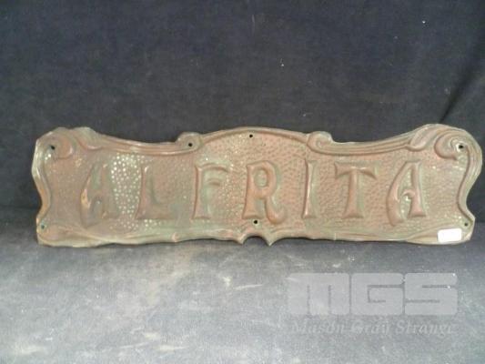 ALFRITA VINTAGE EMBOSSED COPPER SIGN, 45 x 12cm