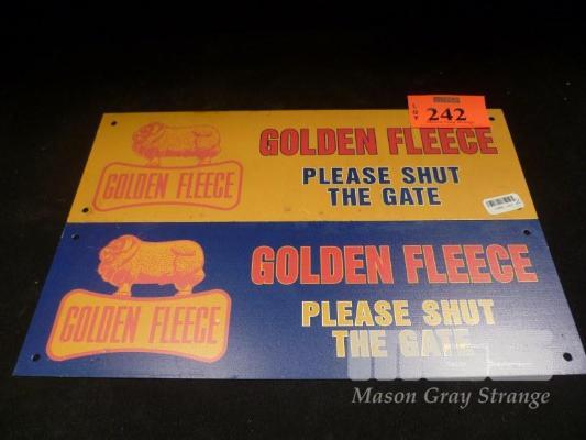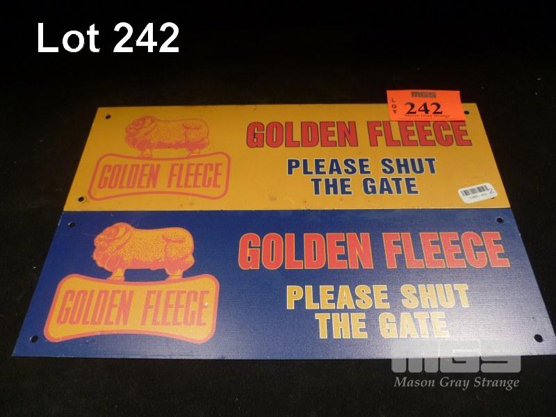 2 x GOLDEN FLEECE REMADE SHUT THE GATE SIGNS