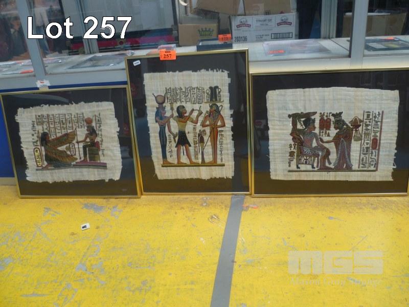3 x FRAMED EGYPTIAN PAPYRUS PAINTINGS