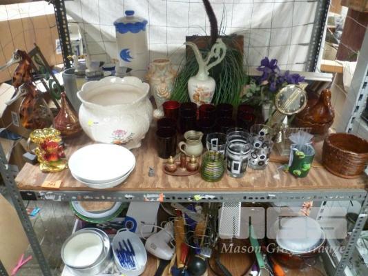 ASSORTED HOMEWARES, INCL CERAMIC VASES, RUBY GLASSES, BEER STEINS, ETC.