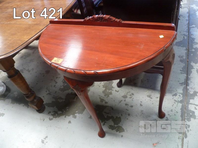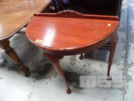 MAHOGANY HALF ROUND HALL TABLE, CABRIOLE LEGS