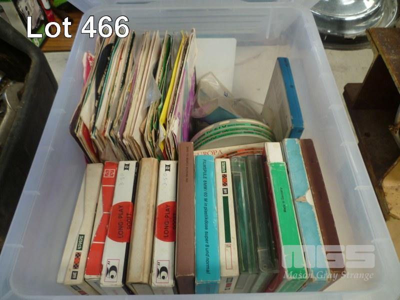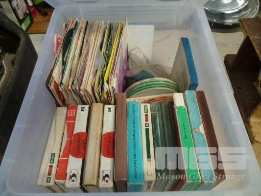ASSORTED 45 RECORDS & REEL TO REEL TAPES 1 X TUB