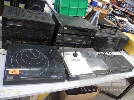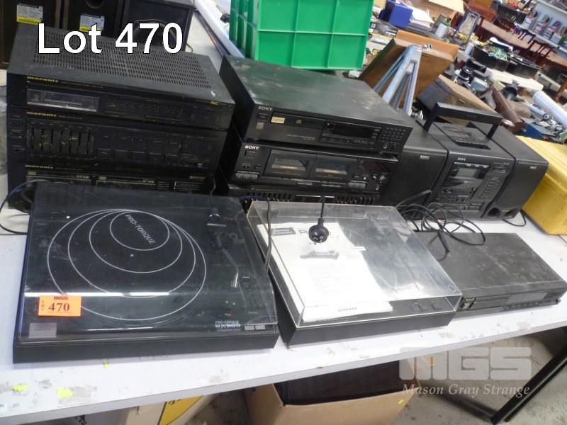 TABLE OF VINTAGE HI FI TURNTABLES, STEREOS, INCL MARANTZ