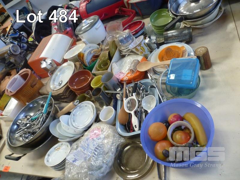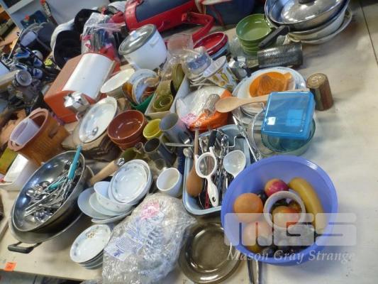 ASSORTED KITCHENWARE, UTENSILS, CUTLERY ETC
