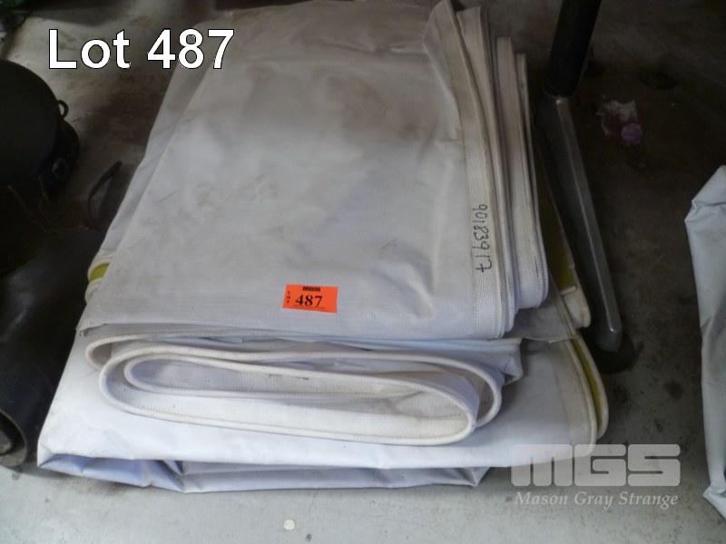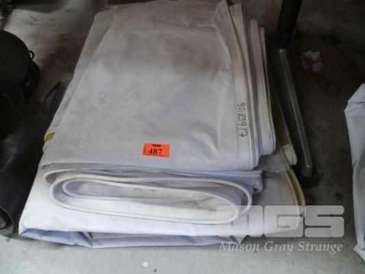 2 X ASSORTED HEAVY DUTY ADVERTISING TARPS. UNKNOWN SIZES