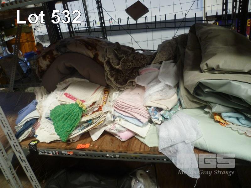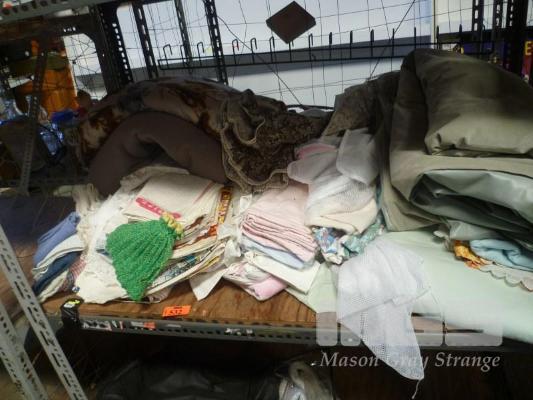 ASSORTED BEDDING, TEA TOWELS, TABLE CLOTHS, ETC