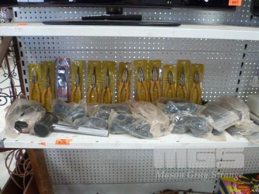 QTY OF TOOLS (ALL NEW OLD STOCK), INCL WELDING GLASSES, ZIP TIES, HAMMERS, SNIPS, ETC.