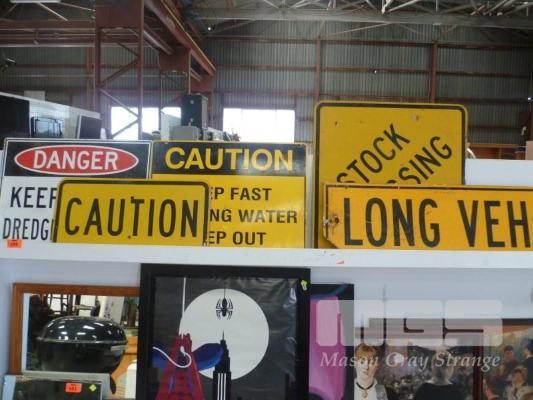 SHELF LOT VARIOUS DANGER & ROAD WORK TIN SIGNS