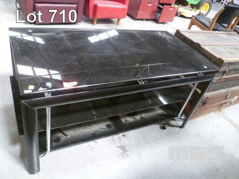 LOW LINE ENTERTAINMENT UNIT, METAL FRAME, 3 x GLASS SHELVES