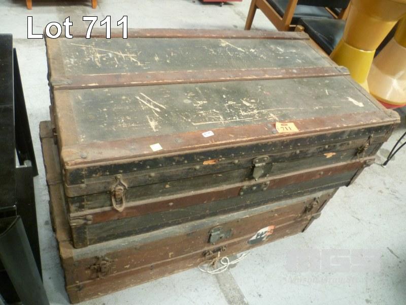 2 x VINTAGE TIMBER TRAVEL TRUNKS