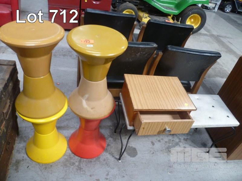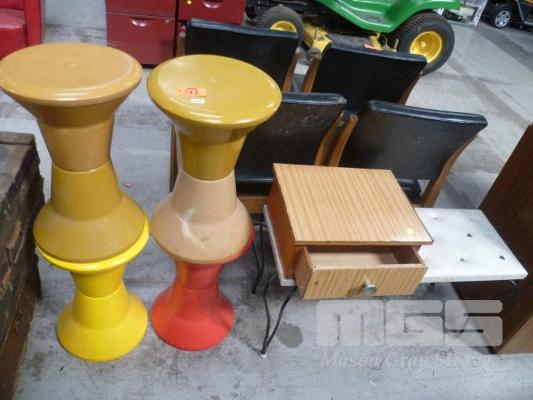 4 x PLASTIC ARCADE STOOLS, & RETRO TELEPHONE TABLE