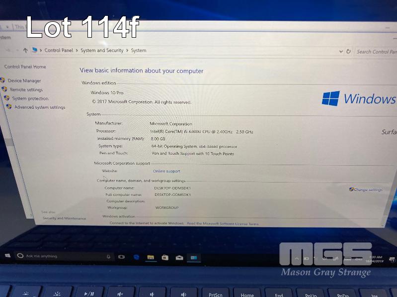 TABLET PC, MICROSOFT SURFACE PRO 4, MODEL 1724, CORE i5 6300U (6TH GEN) @ 2.4GHz, 8GB RAM, 256GB SSD, 12.3" TOUCHSCREEN, Wi-Fi, WINDOWS 10 PRO INSTALLED, KEYBOARD TYPE COVER, SURFACE DOCK (1661) WITH DOCK POWER SUPPLY (1749)