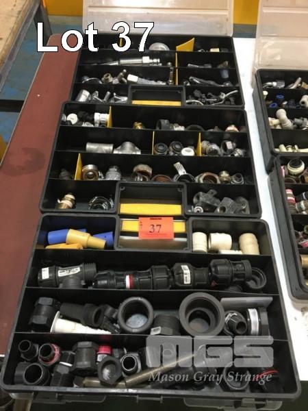 STAINLESS STEEL & PLASTIC PIPE LINE COMPONENTS, INC JOINERS, REDUCERS, TAP FITTINGS, ETC CONTENTS 3 x PARTS BOXES