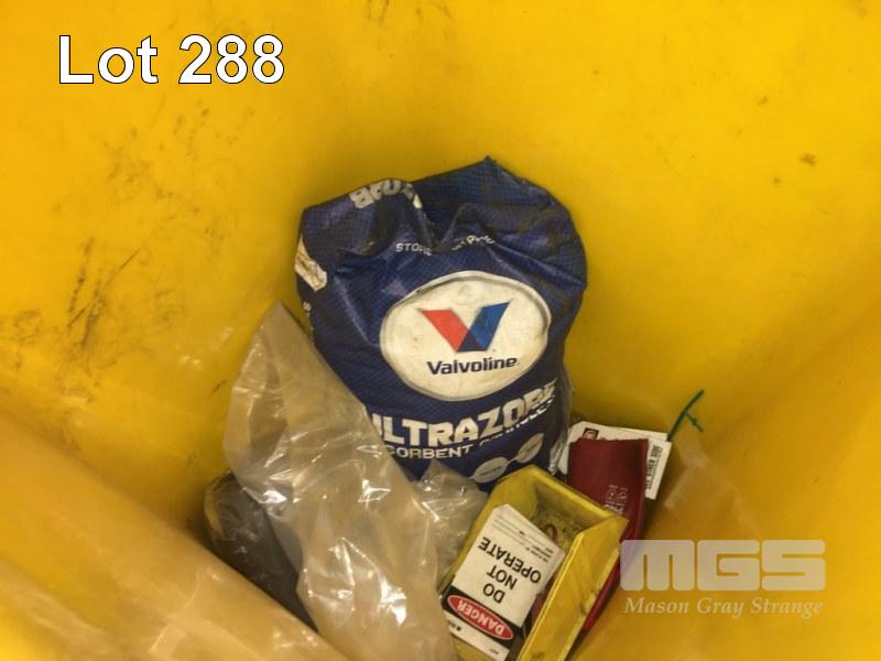 3 x WHEELIE BINS, 1 x FULL OF SAWDUST & BAG OF VALVOLINE ABSORBENT GRANULES, 20kg