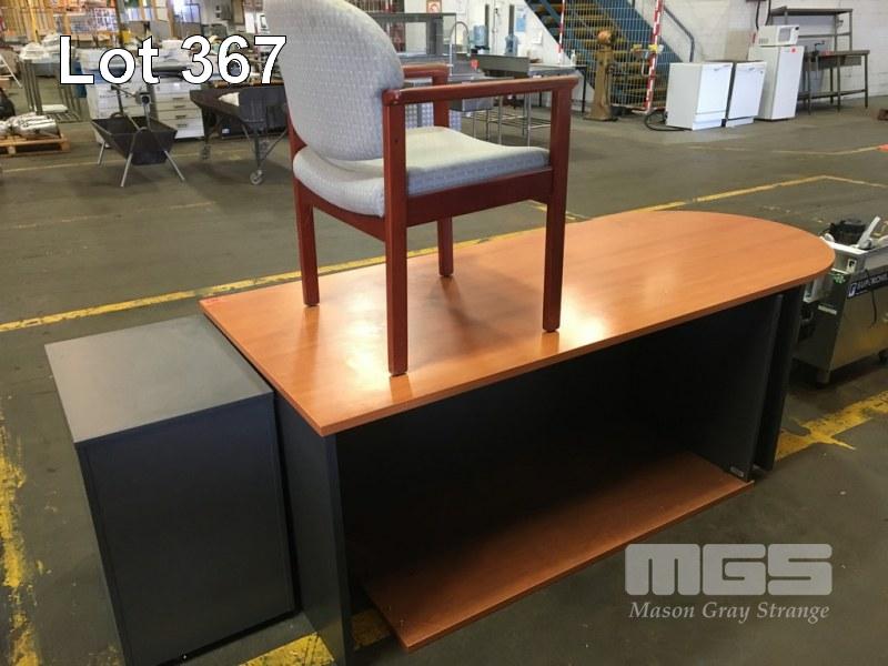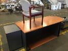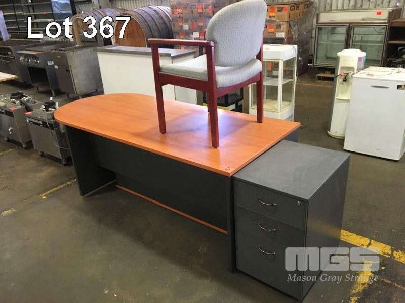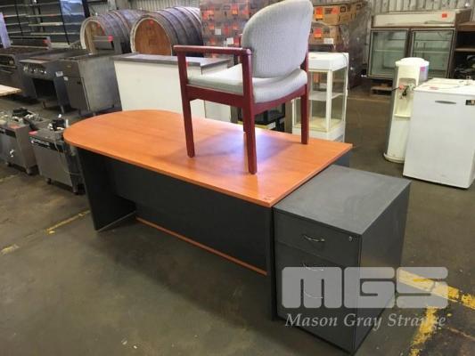 DESK, STORM & TIMBER LAMINATE WITH RETURN, 2100 x 2250mm, CHAIR & 3 DRAWER UNDERDESK MOBILE