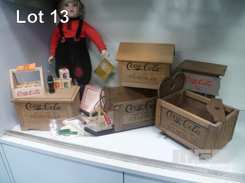 COCA-COLA DOLL, "MATTHEW", FRANKLIN MINT SLED & BOXES, ASSORTED