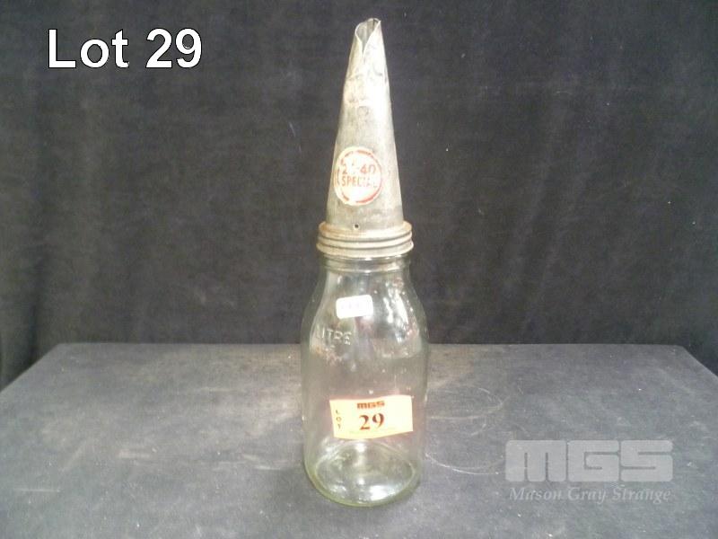 VINTAGE OIL BOTTLE WITH TIN TOP