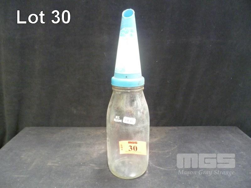 VINTAGE 1 QUART OIL BOTTLE WITH AMACO POURER